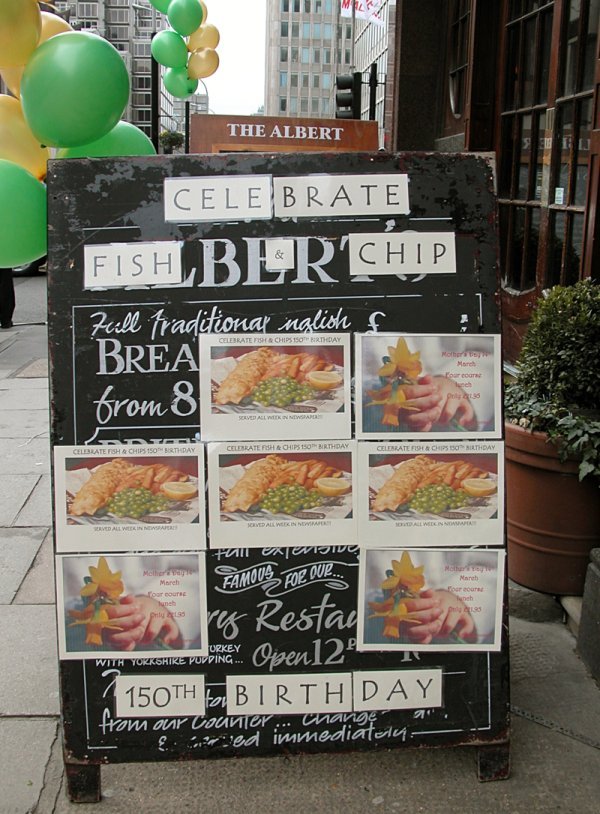 Friars Pride, opskrbljivač dućana, prodavaonica brze hrane i nekih pekara, unajmio je marketinšku i tvrtku za odnose s javnošću Smye Holland Associates da obilježi 150. rođendan fish and chipsa, tj. pržene ribe i krumpirića. Istraživanje je pokazalo da se jelo fish and chips počelo prodavati 1860.