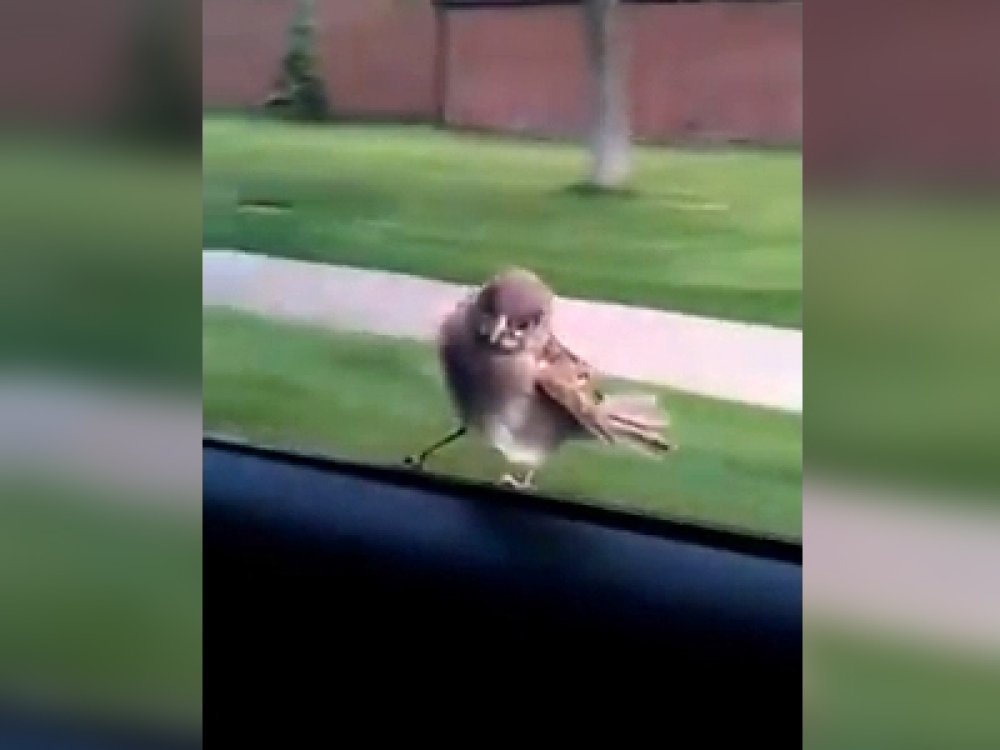 Ptičica koja je sletjela na automobilski prozor sa suvozačeve strane vjerojatno je bila u žurbi pa se odlučila provozati umjesto letjeti. No na kraju je zbog ljudske znatiželje morala napustiti svoj prijevoz