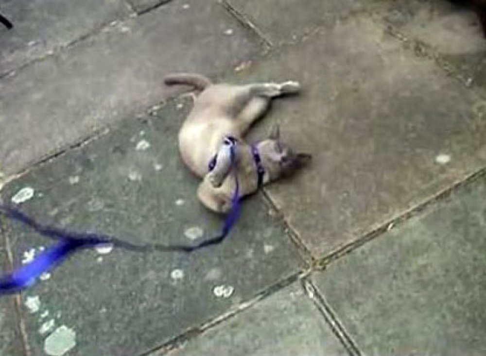 Nadobudni vlasnik pokušao je povesti svoju burmansku mačku u šetnju, no nije računao na njenu lijenost. Kad se mački leži, ona će tako i učiniti