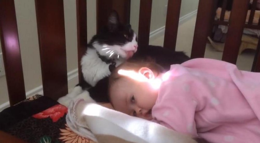Neodoljiva snimka mačka Hoovera koji čisti malu Hazel nesumnjivo će svakome uljepšati dan. Roditelji Jen i Dennis jednostavno nisu mogli odoljeti a da ne snime slatku scenu.