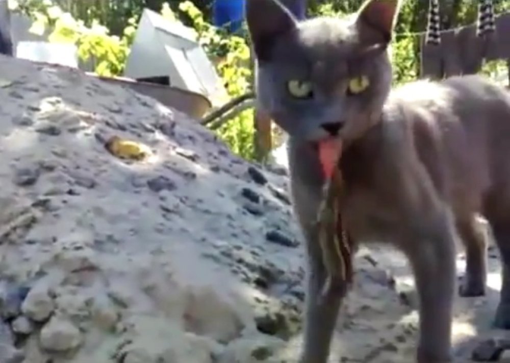 Ova je maca šutke otrpjela društvo stvora koji joj se prikačio. Što je bilo? Gušter papao jezik? Čini se da jest. Taj gmaz zbilja se ne zna igrati.