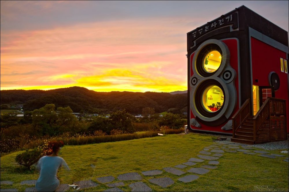 Dreamy Café iliti prosto prevedeno Kafić iz snova, nalazi se u Južnoj Koreji i izvana izgleda kao golemi Rolleiflex, legendarni fotoaparat s dva objektiva.