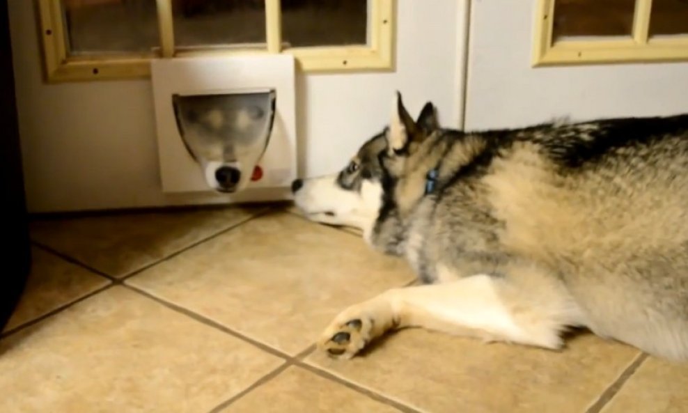 Mala vratašca za mačku poslužila su ovim haskijima da se podruže i izgovore jedan drugome sve što su htjeli. Na trenutke rasprava djeluje žustro, čak se i zubi pokazuju, no ipak sve ostaje samo na 'riječima'.