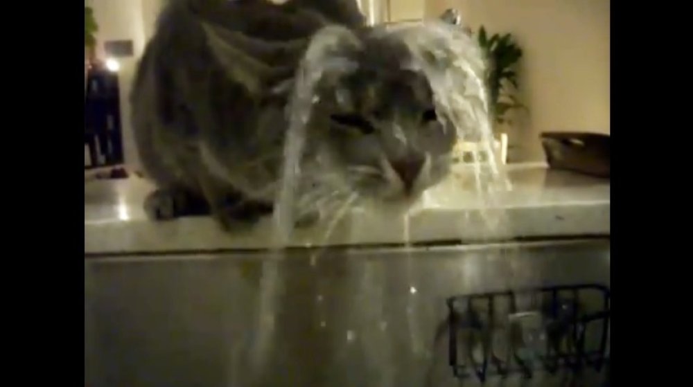 Ne znamo što je točno htjela mačka na snimci – oprati glavu ili napiti se vode – no što god da je naumila, na kraju je čudno obavila.