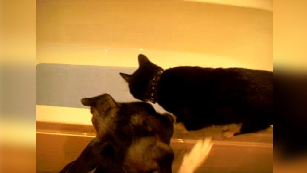 Pas i maca su neuspješno pokušavali dohvatiti igračku u kadi sa sigurne udaljenosti, sve dok pas nije malo 'pomogao' maci
