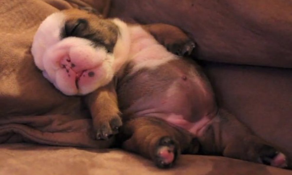 Mala buldogica Susie Q. trese se u snu. O čemu li to sanja?