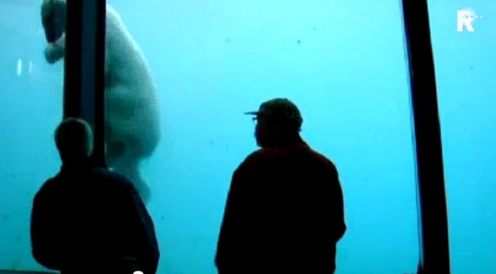 Polarna medvjedica zvana Vicks inače voli svoj život u akvariju. No ako je posjetitelji previše napadno gledaju, ponekad se naljuti i pokuša razbiti staklo kamenom koji pokupi s dna akvarija. Zato - budite oprezni!