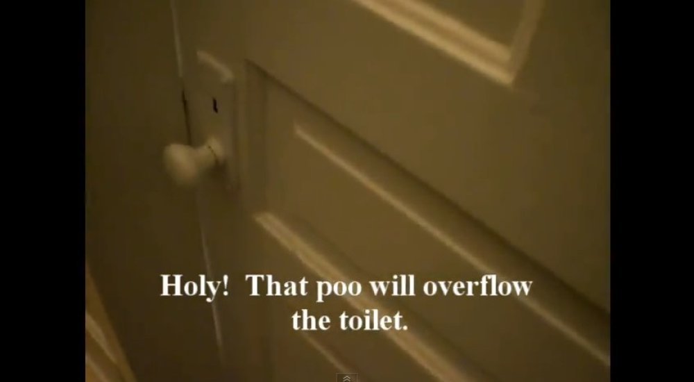 Trogodišnjak se prejeo i na snimci sjedi na zahodu razgovarajući sam sa sobom o tome. Za to vrijeme, roditelji čuče pred vratima, snimaju ga i plaču od smijeha.