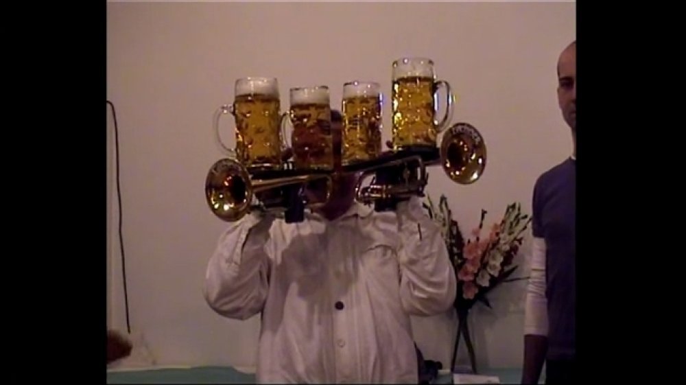 Postoji samo jedna stvar koju možemo reći na ovu snimku – nevjerojatno smo zavidni ovom vještom sviraču trube. Baš kao što pijanisti u kaubojskim filmovima drže osvježenje na klaviru dok sviraju, i ovaj njemački trubač drži četiri krigle piva na dvije trube koje istovremeno svira. Živjeli!