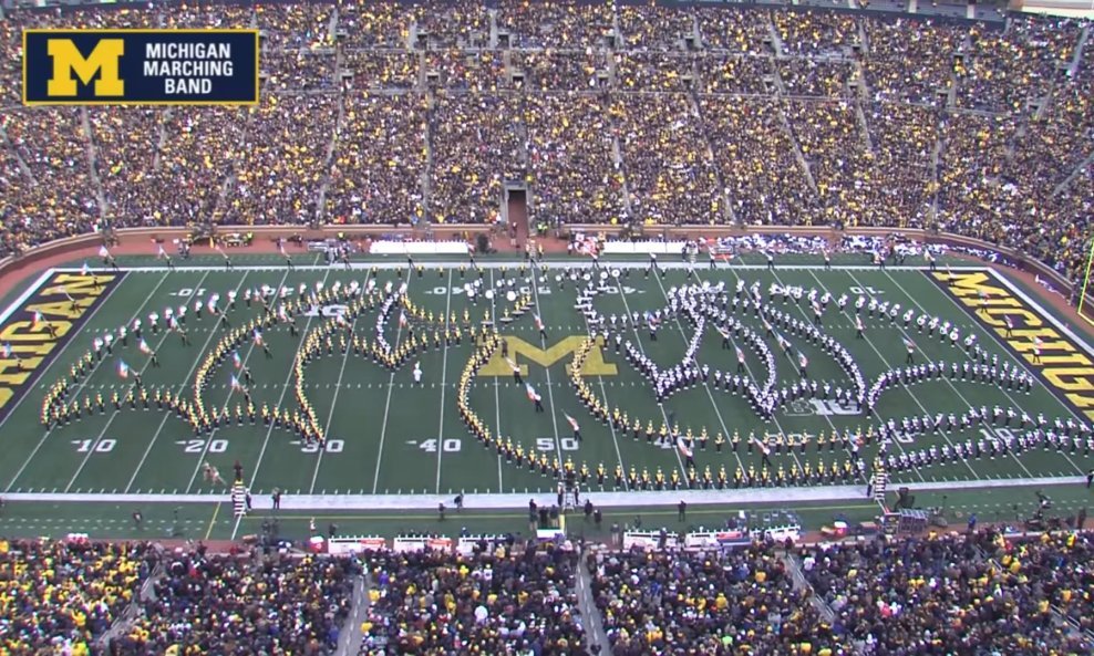 Limeni orkestri Sveučilišta Michigana i Penn Statea imali su sjajan nastup tijekom poluvremena utakmice