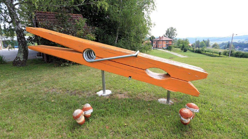 Željko Čoholić izradio je veliku kvačicu i postavio na livadu uz cestu