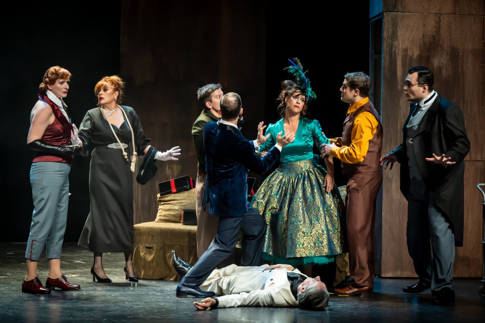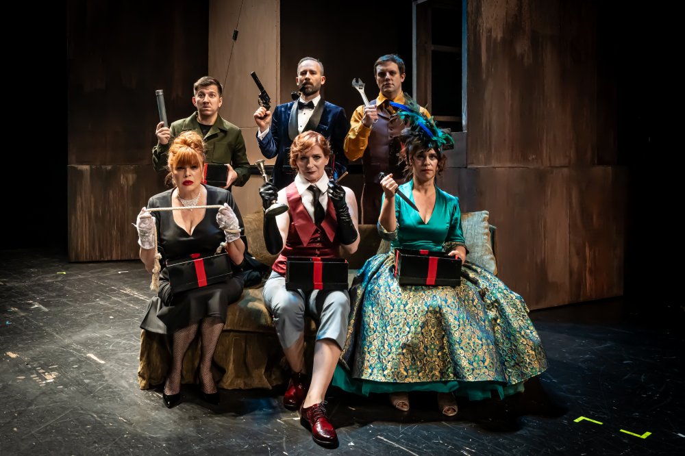 U slučaju prve hrvatske inačice ovog (po svim predispozicijama urnebesnog) komada, publika se smije i reagira (jer je doista smiješno), glumački je ansambl sastavljen od talentiranih i duhovitih ljudi (predvođenih fascinantnim komičarskim genijem Domagoja Ivankovića), za scenografiju Stefana Katunara se svakako ne može reći da nije domišljata (umjesto statičnih kulisa koristi rotirajuće elemente pa funkcionira kao "živa" verzija ploče za igru), retro kostimi su vizualno upečatljivi i dobro usklađeni s identitetima likova (Sara Lovrić Katić), glazba Tomislava Babića sjajno pogađa žanr i ritam radnje, a misterij se – baš kako i treba – kreće po rubu između napetosti i apsurda, u kompletu s kazališno rekreiranim alternativnim završecima.