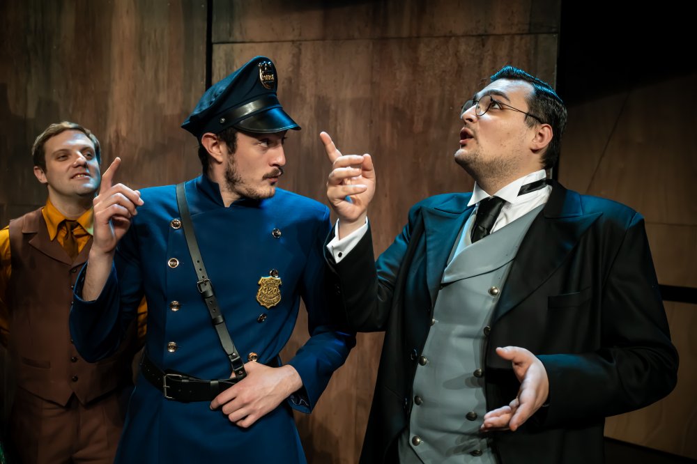 Krempuhova predstava počinje kao projekcija, s filmskim foršpanom, gdje se nabrajaju likovi i glumci koji ih utjelovljuju, te redateljica, da bi potom glatko skliznula u kazališnu izvedbu, u koju nas – nakon kratke uvertire u kojoj Ornela Vištica kao francuska sobarica Yvette postavlja ton lagano erotizirane, karikirane komedije – spretno uvodi Ivanković, batler i svojevrsni vodič kroz kaos. Ujedno i glumac koji točno zna što farsa traži: njegova je igra fizička, brzopotezna i precizna, oslonjena na slapstick i kratke komične situacije; stalno je u pokretu, puca od energije.