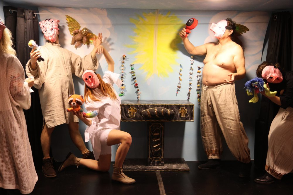 Glumački ansambl čine Luka Slišković, Borna Baletić, Luka Bulović, Tara Dorotić, Ena Jagec i Igor Jurinić. U stvaranju predstave sudjeluju brojni suradnici: glazbu potpisuje Igor Jurinić, scenu i maske oblikuju Sven Stilinović i Silvio Živković, a za kostime je zaslužna Suzana Brezovec. Pokret potpisuje Ena Jagec, dok je za produkciju, grafičko oblikovanje i video projekcije zadužen Marko Milovac. Kao suradnica za francuski jezik sudjeluje Barbara Rismondo.