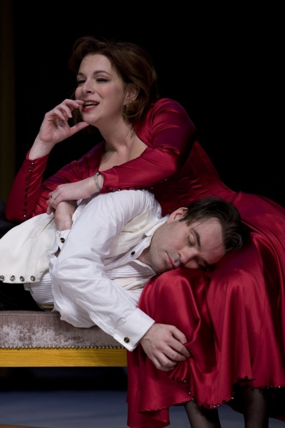 Međutim, ovakva Leda čak ni glumcima nije učinila uslugu jer nitko iz ansambla Gavelle njome nije profitirao. Kako je podjela pola posla ili se barem samo tako kaže, Ozren Grabarić kao Oliver Urban i Franjo Dijak kao slikar Aurel te Bojana Gregorić Vejzović kao Melita i Jelena Miholjević kao Klara, ženski dio isprepletenog četverokuta, činili su se logičnim i donekle točnim rješenjem. Međutim, od njihovih kvaliteta ostalo je malo, dok im je medvjeđa usluga režije donijela samo to da su upravo njihove mane izašle na vidjelo. Nevjerojatno, ali istinito, nakon ove predstave može se zaključiti da Grabariću ne leži gransenjerska gesta s gomilom kompliciranog teksta i da Franjo Dijak ne može dulje od pet minuta biti egzaltirani pjetlić, dok svi ostali, točnije sve ostale, ne vrijede ni spomena. A nije baš tako, jer Jelena Miholjević jest glumica koja poznaje strast kad zna zašto to radi, a Bojana Gregorić ipak nije samo lice i tijelo s TV ekrana. To što zaista svi, osim Janka Rakoša u ulozi sasvim prizemno jasnog Klanfara, zvuče loše, ne treba pripisati konceptualnom pristupu, novom režijskom viđenju teksta koje 'lošom glumom' želi prikazati koliko svi skupa, i danas kao i između dva (ona prva dva) rata, 'loše glumimo'. Istina je puno jednostavnija - to je jednostavno režijski loše i nedomišljeno.
