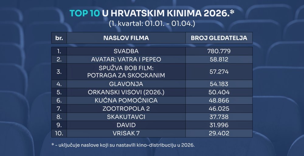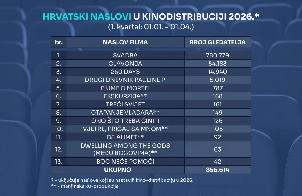 Zahvaljujući rekordnom rezultatu filma 'Svadba' Igora Šeregija, hrvatski film bilježi najuspješniji prvi kvartal u povijesti države kad je riječ o gledanosti u kinima