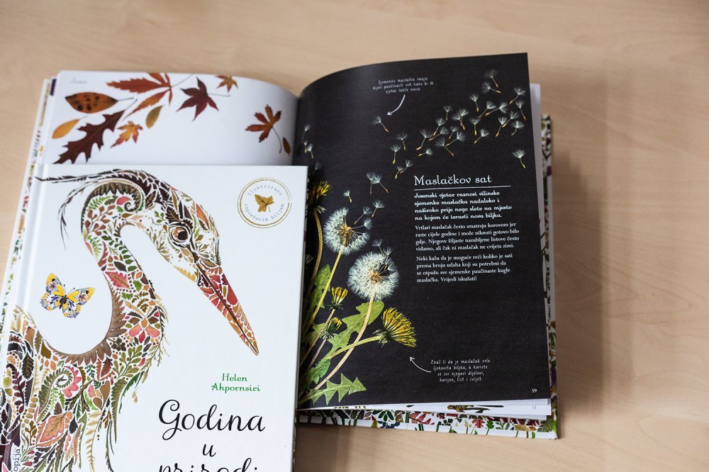 ''Godina u prirodi' Putovanje u godišnja doba' Helen Ahpornsiri je nesvakidašnja slikovnica za sve ljubitelje prirode.Britanska umjetnica Helen Ahpornsiri preobrazila je latice, lišće i sjemenke u razigrane zečeve, blistave leptire i ptice u letu i stvorila jedinstvenu knjigu. U njoj je baš svaka ilustracija, svaki pupoljak, stablo, životinja, načinjena od rukom ubranih i isprešanih biljaka, stoji u najavi.