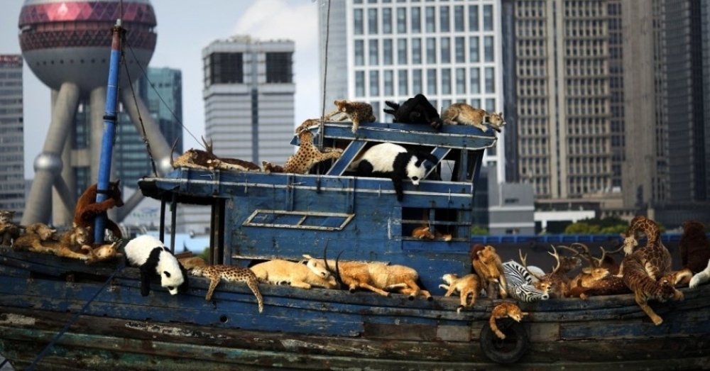 Izložba kineskog konceptualnog umjetnika sa stalnom newyorškom adresom Caija Guo-Qianga, otvorena u državnom muzeju suvremene umjetnosti u Šangaju, bavi se za tamošnju vlast bolnom temom zaštite okoliša, a središnje mjesto na izložbi zauzima suvremena biblijska arka ispunjena bolesnim životinjama