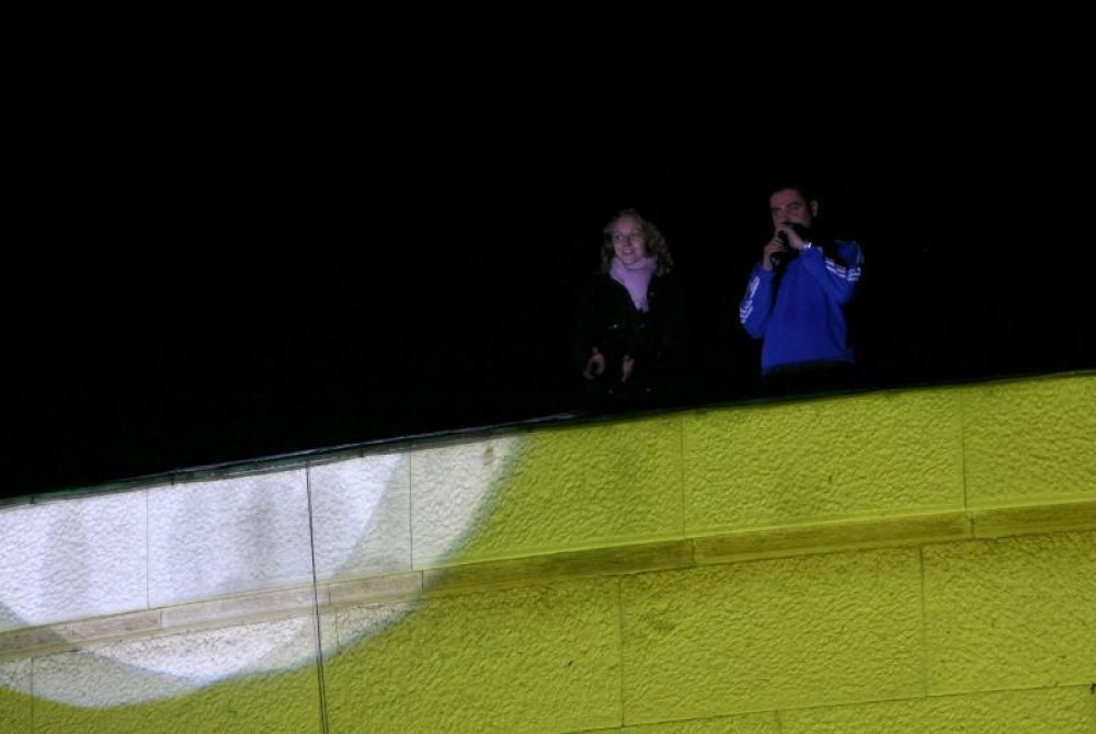 Suvremeni umjetnik Krešimir Kapulica izveo je performans 'Život je super' te na krovu HDLU-a plesao s glumicom Marijom Borić