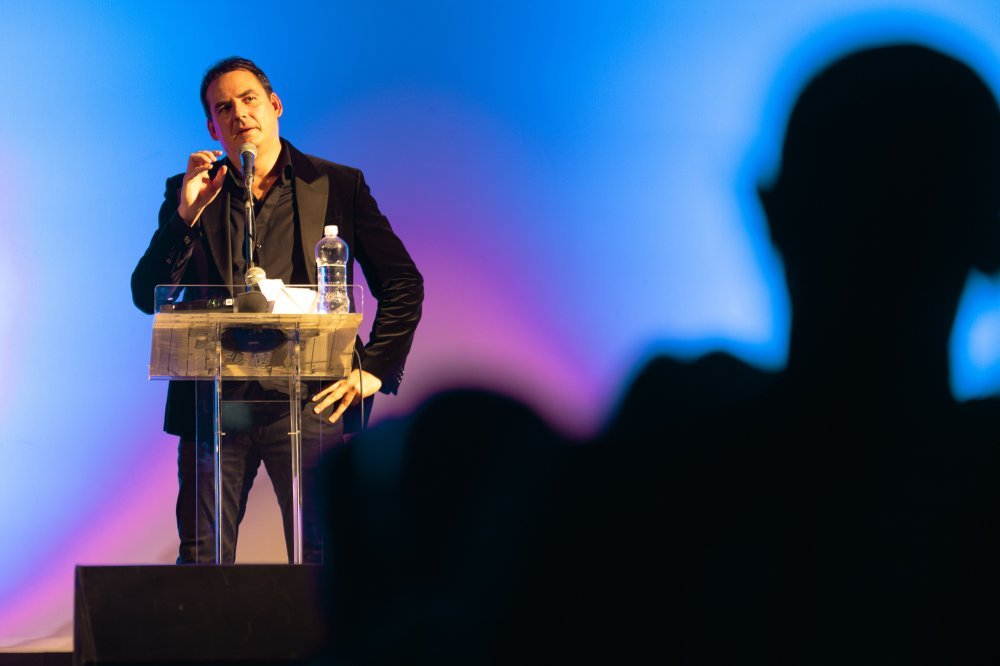 Poigravajući se sa stereotipima, Kesić balansira na granici politički korektnog i ne boji se otvoriti ni najosjetljivije teme, a kako ističu organizatori, pokušat će vas čak i podmititi novčanicama sa svojim likom. Ne nasjedajte.