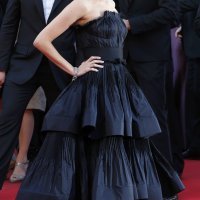 S visoko podignutom kosom ispletenom u bogatu retro punđu, glumica je opravdala titulu najbolje odjevene žene u Cannesu. Haljina koju je odabrala za finalnu večer odlično je naglasila njezinu liniju, a dodatni glamur cijelom stajlingu dali su kristali Swarovski i dragulji Harry Winston.