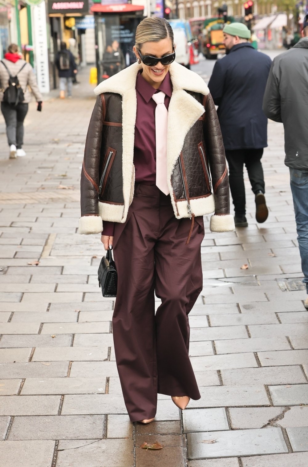 Ashley je odabrala upečatljivu tamnosmeđu jaknu s efektnim detaljima od umjetnog krzna, s potpisom poznatog brenda AllSaints, bezvremenskim zimskim favoritom koji se može nositi na bezbroj načina.