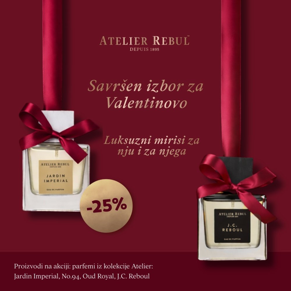 Za sve koji ovog Valentinova žele pokloniti miris s karakterom ili pronaći novi osobni potpis, upravo ovi parfemi iz Atelier kolekcije dostupni su uz 25 % popusta od 07. do 28. veljače na službenoj web-stranici www.atelierrebul.hr .