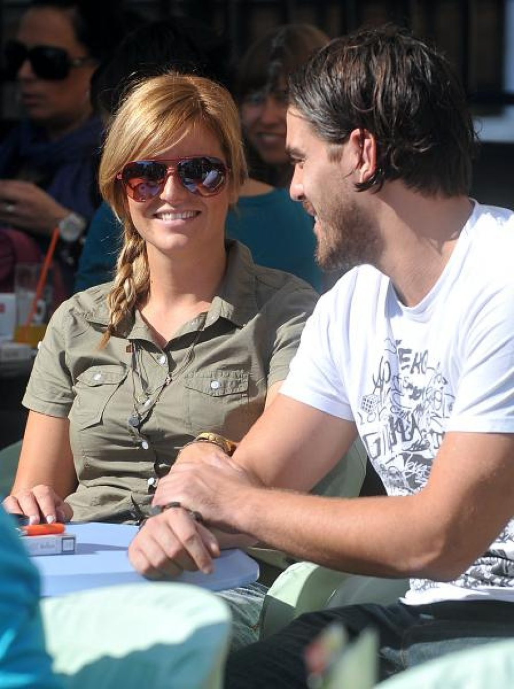 Antonija je došla u vojnički zelenoj, vrlo uskoj košuljici, a look je upotpunila dvama lančićima oko vrata. Kako je sunce bilo prilično jako, nije skidala sunčane naočale s lica. Hrvoje Brlečić pak nije skidao pogled sa svoje drage.