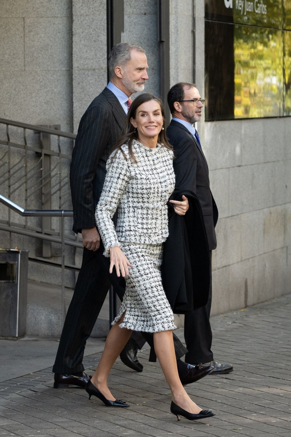 Letizia je za ovu priliku odabrala crno-bijeli komplet od tvida, izrađen u sklopu projekata Fundacije APRAMP, čije žene stvaraju mnoge od njezinih najprepoznatljivijih odjevnih komada. Time je kraljica još jednom povezala svoj javni nastup s porukom osnaživanja žena. Klasičan tvid, koji se često povezuje s Chanelom i kraljevskim stilom, podsjeća na odjevne kombinacije monegaških princeza Caroline i Carlote Casiraghi, čime se dodatno naglašava bezvremenska privlačnost ovog materijala.