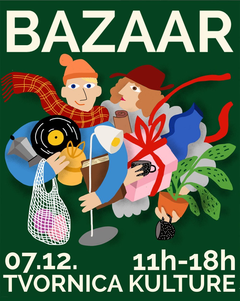 Nakon nedavnog, povratničkog izdanja koje je napunilo klub u Šubićevoj Bazaar za sam kraj godine priprema posebnu i još bogatiju božićno ediciju. Ovaj put će se u Velikom pogonu Tvornice predstaviti više od 65 izlagača – kreativaca, autora i kolekcionara s nakitom, keramikom, modnim dodacima, dizajnerskom robom, prirodnom kozmetikom, igračkama, proizvodima za kućne ljubimce i uređenje doma, ilustracijama, slikama, stripovima, knjigama, tapiserijama, pletenim torbama i lutkama, 3D printevima, plakatima, bedževima, stickerima, origamijem, kartama za tarot i još mnoštvo toga.
