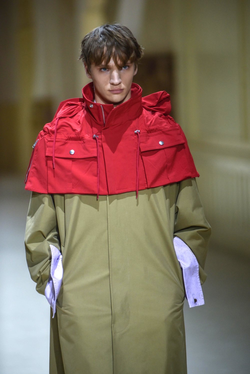 Kolekcija je zato bila 'neugodno' koncipirana. To ne znači da je odjeća bila neudobna, ipak je riječ o luksuznoj modi, već da su u jednom looku spojeni nespojivi elementi: gornji dio crvene ribarske kabanice uz mantil ili žuti pulover širokog izreza uz košulju čije manšete vire iz rukava. Uz to su viđeni zanimljivi stilski detalji, poput novčanika zabačenih u stražnji džep ili upečatljivih, jarko obojenih vezica na cipelama.