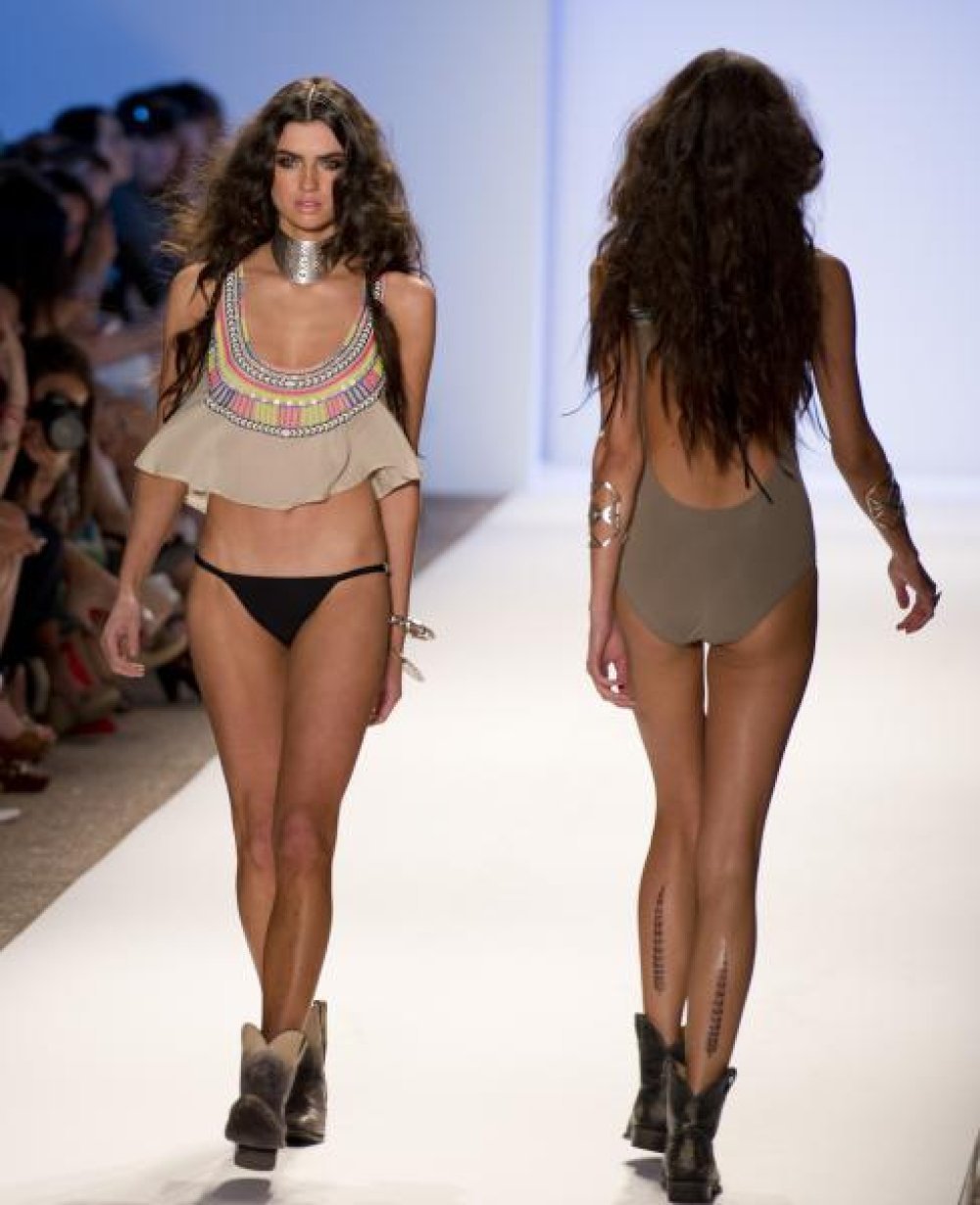 Badići koji se sugeriraju za iduće ljeto donose pokoji novi zakon, poput resica i volana na dekolteu. Ako to pravilo zadovoljite, sve je ostalo dopušteno, od gaćica niska struka do onih duboko rezanih, od minijaturnih bikinija do čednih inačica s boksericama.