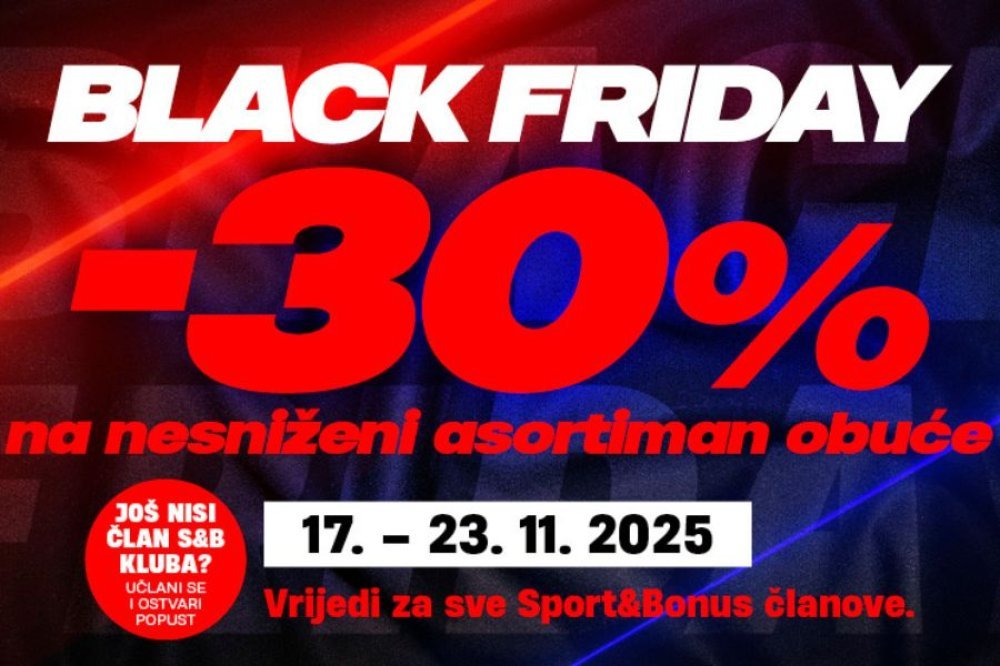 Zagrijavanje za Black Friday počinje ranije! Od 17. do 23. studenoga 2025. iskoristi -30% popusta na svu nesniženu obuću i ugrabi svoje favorite prije glavne shopping groznice.