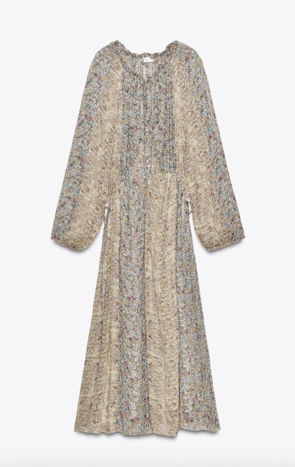 Treći se ističe patchwork pristupom – kombinira različite cvjetne printeve, ima duboki V izrez i prošiv ispod prsiju, pa laska silueti i stvara lijepu dinamiku pokreta; podjednako dobro izgleda s mokasinama i predimenzioniranim sakoom kao i s kožnom jaknom.
