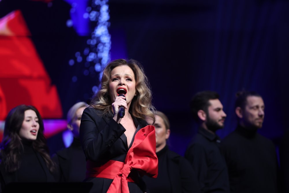 I onda se na pozornici pojavi Sandra Bagarić. I pogodite u čemu. Kombinezon s mašnom. Da, opet. Razumijem ja modnu dosljednost, ali ovo je kao déjà vu iz prošlog prosinca. I nema problema, ponavljanje je majka mudrosti. Da nema te ogromne mašne, to bi bio običan triko za jazz dance. Ali mašna je tu, velika kao da će njome zamotati pitu za cijeli Lisinski.