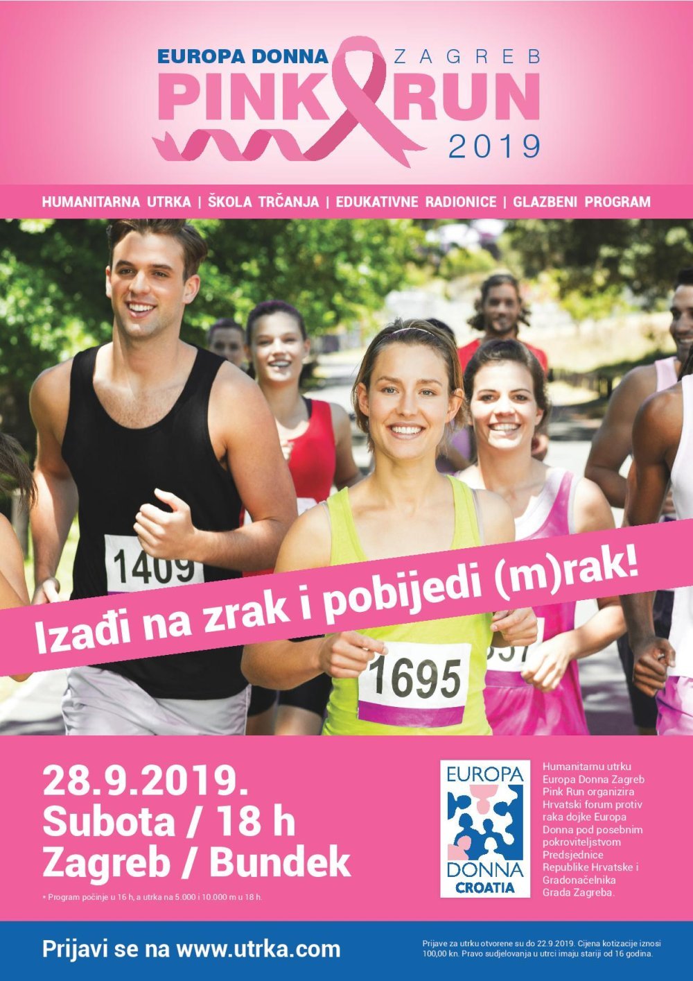 Krajem rujna, točnije 28. rujna 2019., na zagrebačkom jezeru Bundek održat će se drugo izdanje humanitarne Europa Donna Zagreb Pink Run utrke, koja je ujedno i najava «ružičastog mjeseca» – listopada, svugdje u svijetu posvećen borbi protiv raka dojke. I ove godine Pink Run održat će se pod visokim pokroviteljstvom predsjednice Republike Hrvatske Kolinde Grabar Kitarović i gradonačelnika Grada Zagreba Milana Bandića.