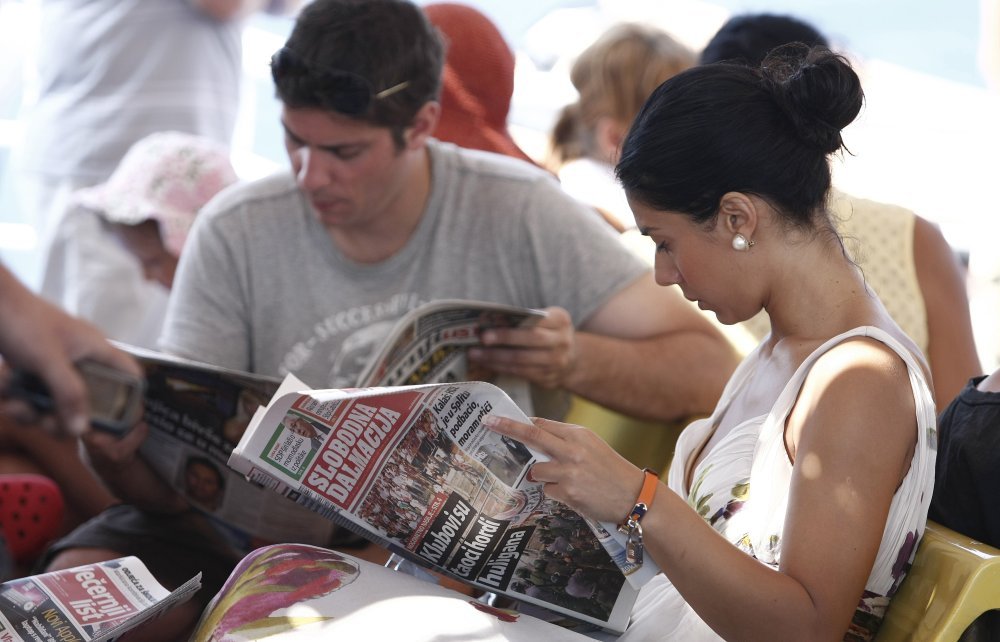 Na trajektu iz Supetra za Split, zamišljena Dolores Lambaša je u društvu Lea Radeljaka, sina svojeg novog izabranika, vrijeme kratila čitajući dnevne novine