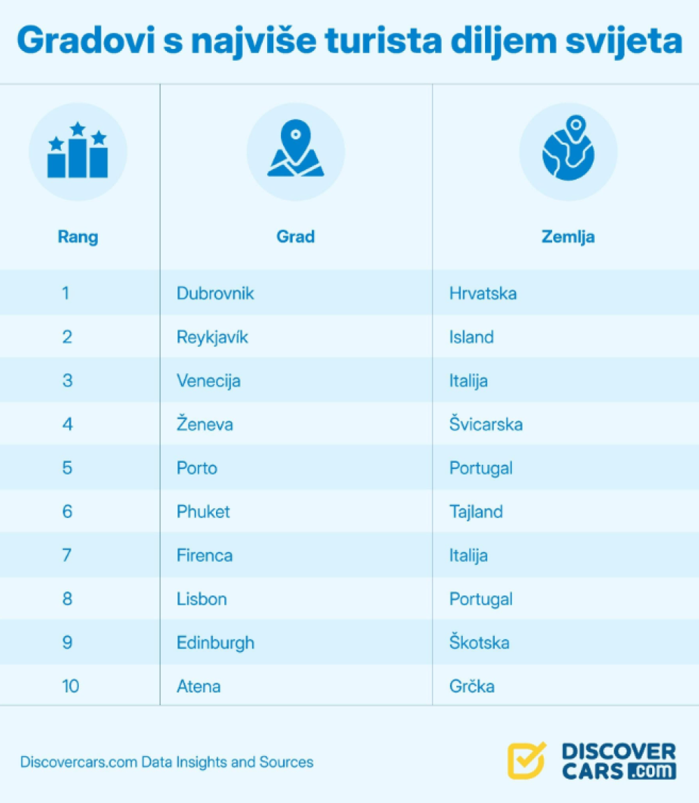 Dubrovnik se na listi stranice DiscoverCars.com smjestio na prvo mjesto kao grad u svijetu s najviše turista u odnosu na mještane.