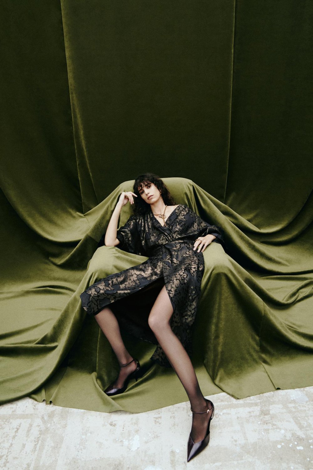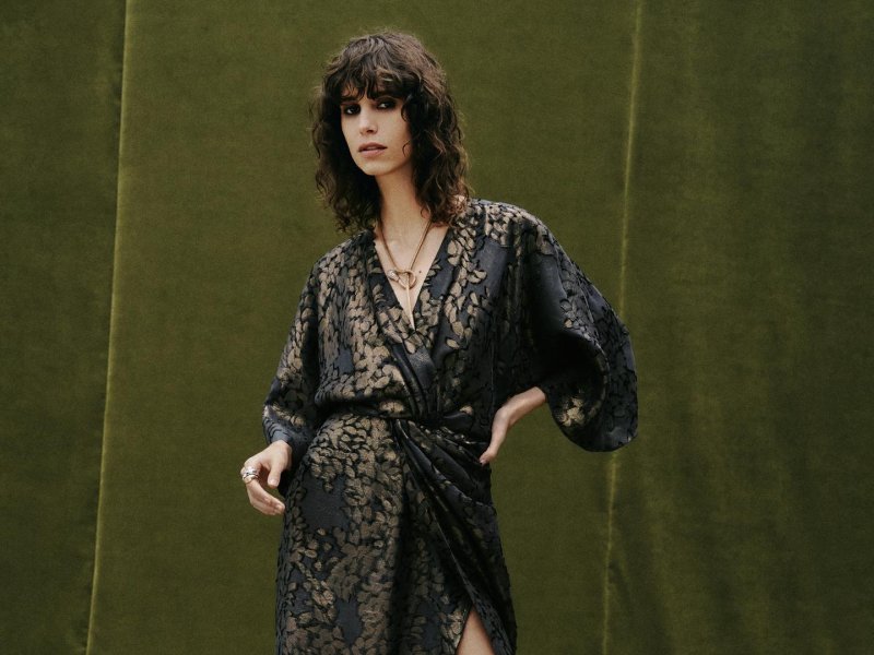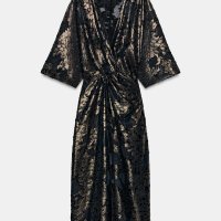 Model se nalazi među novitetima svečanog asortimana Inditex brenda i dizajniran je s V-izrezom i širokim rukavima koji završavaju neposredno ispod lakta, što omogućuje ležeran, ali dotjeran pad na tijelu.