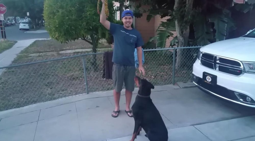James Bargender dosjetio se kako naučiti svog dobermana da mu skače u naručje