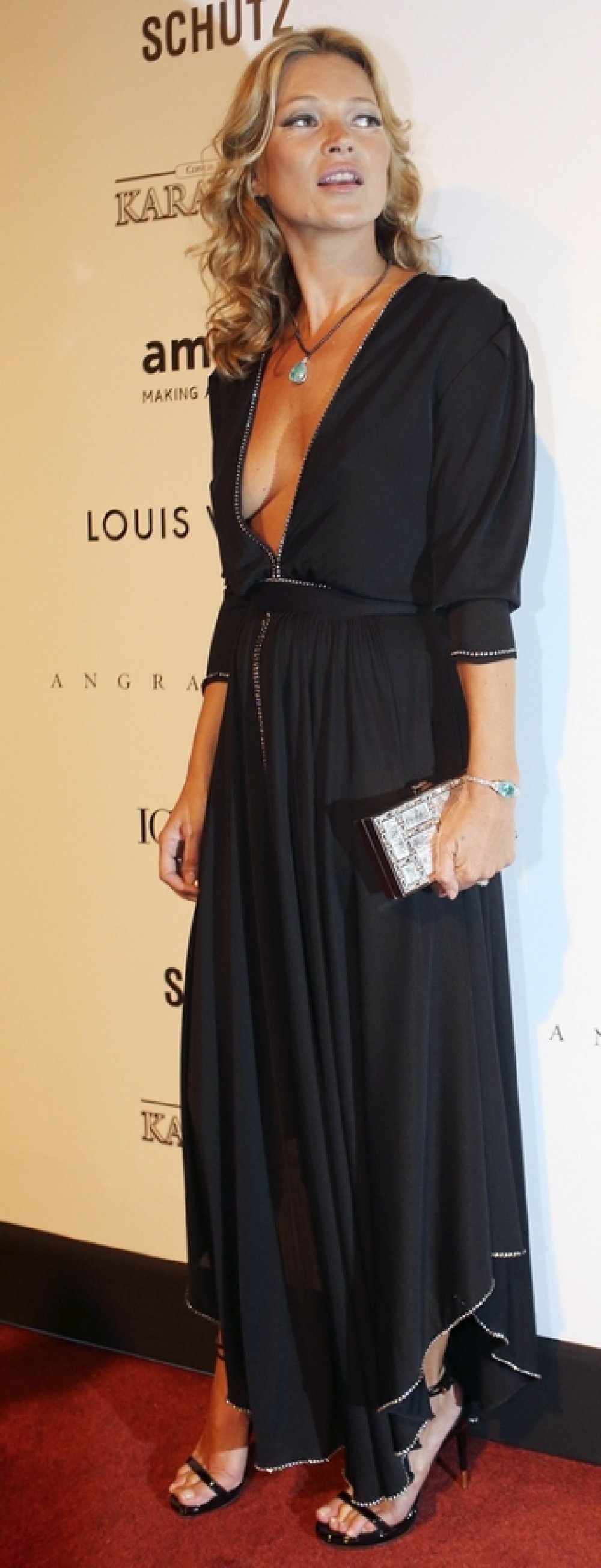 Duboki dekolte pokazala je i Kate Moss odjenuvši crnu dugu haljinu rubova ukrašenih sjajnim štrasom. 39-godišnja Kate pokazala je jako dobar razlog zašto je mnogi smatraju modnom ikonom.