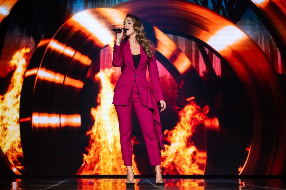 I za kraj – Franka. Skakala je po pozornici u ružičastom sakou, cigareta-hlačama i crnom topu, kao da za pet minuta vodi Dnevnik. Sve je bilo uredno, pristojno, ali toliko office chic da sam se pitao gdje su fascikli i registratori.