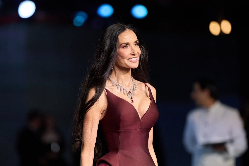 Svojim modnim odabirom Demi Moore savršeno je spojila klasičnu eleganciju i suvremeni, skulpturalni dizajn, karakteriziran bočnim šlepom od raskošne tkanine bordo crvene boje koja se elegantno spuštala te je dodatno naglasila vitku figuru 62- godišnje glumice.