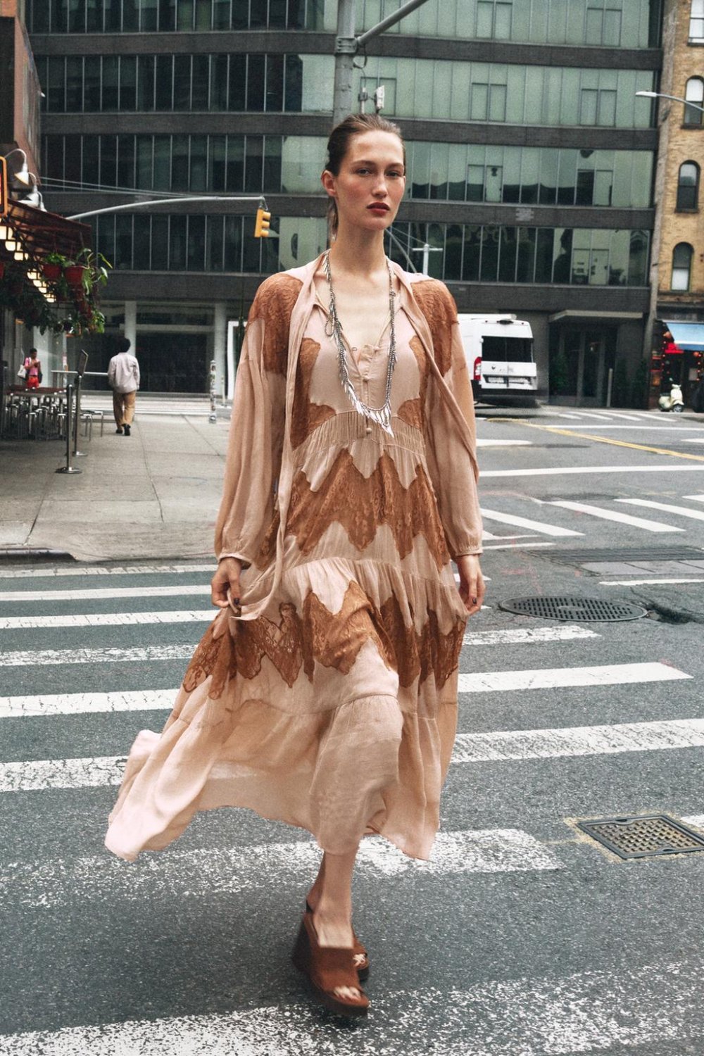 Među sniženim Zara haljinama posebno se izdvajaju dugi modeli s lepršavim siluetama koji prate liniju tijela bez pretjeranog naglašavanja. Takvi krojevi djeluju elegantno, ali i opušteno, a istodobno vizualno izdužuju figuru. Otvoreniji izrezi, poput V-izreza ili decentno otkrivenog vrata, unose dozu lakoće i daju mladenački dojam.