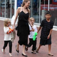 Odjevena u crno od glave do pete – suknju do koljena, podulji crni top s tankim naramenicama te crne balerinke, Angie je uspjela s petero djece izgledati odlično. Mališani su bili i više no oduševljeni, a Angie ih je odvela i u gift shop gdje su si djevojčice izabrale plišane igračke u obliku popularnog Nema.