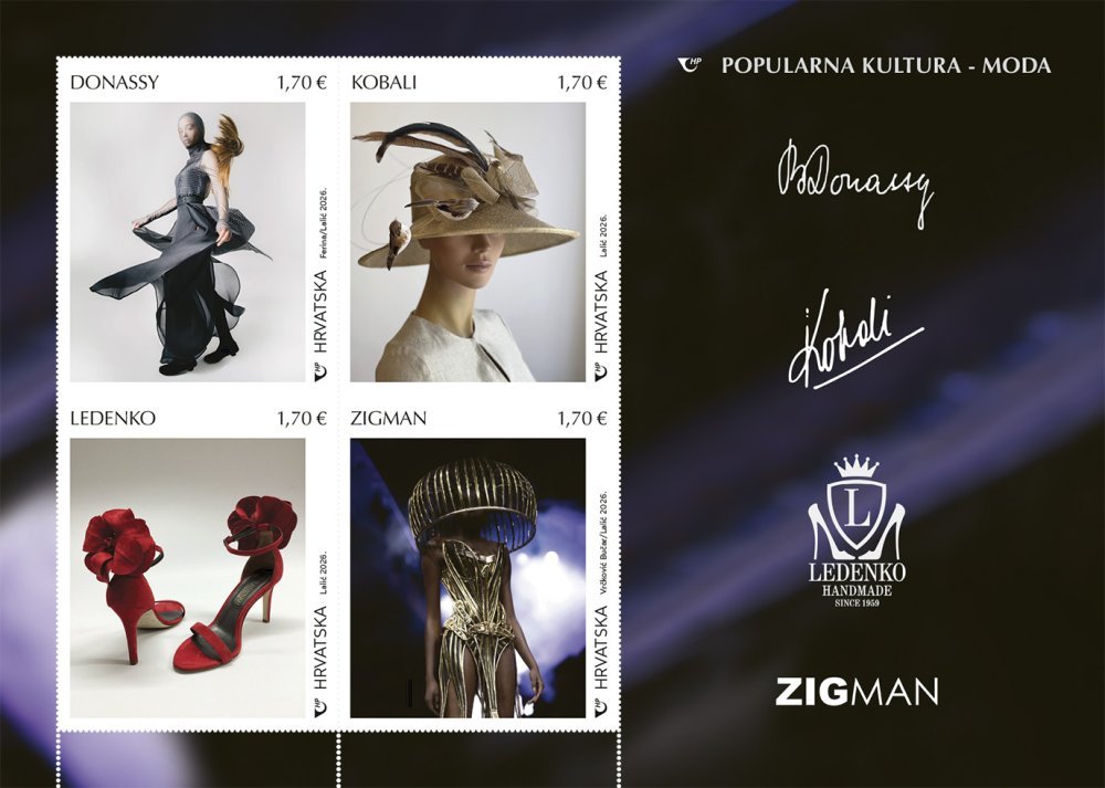 Hrvatska pošta pustit će u optjecaj 23. veljače 2026. novi prigodni poštanski blok iz serije „Popularna kultura“. Prigodni blok, čija je ovogodišnja tema moda, sastoji se od četiriju poštanskih maraka s motivima odjevnih predmeta hrvatskoga modnog dizajna.