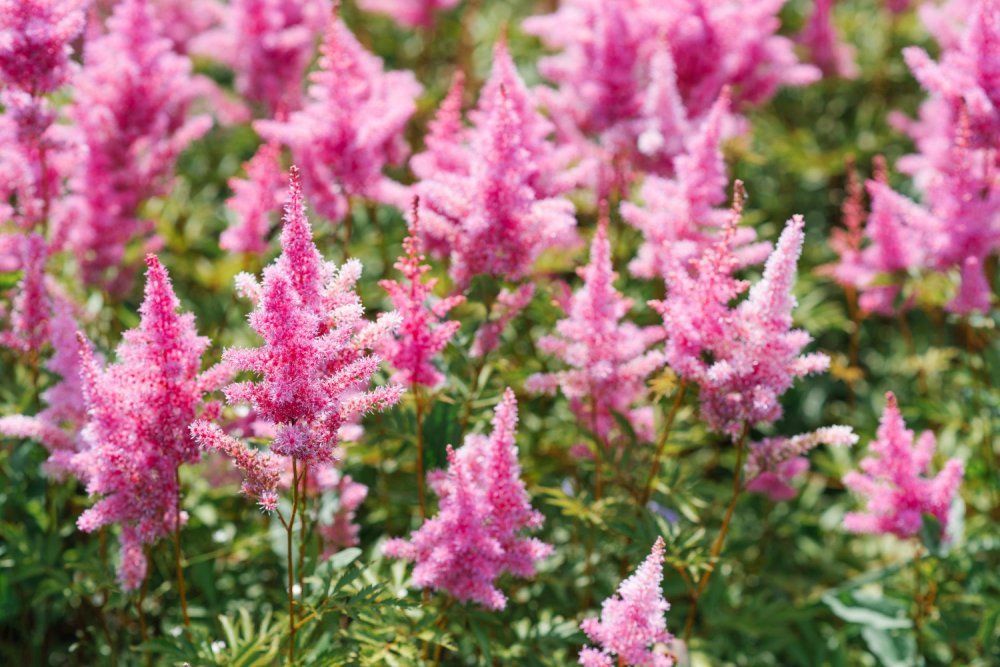 Astilba je jedna od najčešćih preporuka za sjenovite vrtove jer dobro uspijeva u polusjeni i hladu, osobito ako je tlo dovoljno vlažno. Prepoznatljiva je po perjastim cvatovima u bijeloj, ružičastoj, crvenoj i ljubičastoj boji, zbog čega vrtu daje mekoću i prozračnost.