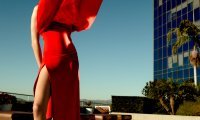 Riječ je o kontrastnoj haljini s glamuroznim brošem na struku, pomoću kojeg je postignut satirani kroj koji u trenu 'briše' trbuh i vrhunski laska silueti.