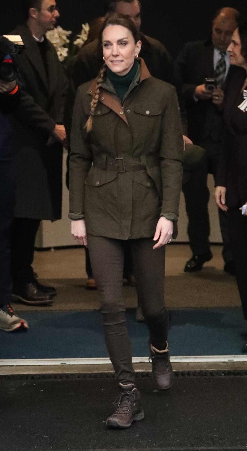 Supruga princa Williama svoju je vitku figuru istaknula efektnom sportskom jaknom s remenom military stila spojivši je s udobnim ravnim 'outdoor' gležnjačama namijenjenima za boravak u prirodi, ali i pripijenim skinny hlačama u istom tonu.