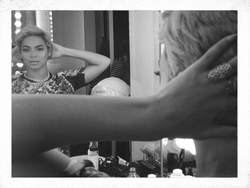 Pozirajući pred ogledalom, Beyonce je pokazala novu kratku i u plavo obojenu kosu. Dječačka i nestašna frizura ima razdjeljak na sredini, a ispod plave boje nazire se tamni sloj kose. Osim njezine nove frizure, nikome nije mogao promaknuti i savršeno čist i zdrav Beyoncein ten te prirodno lijepo lice.
